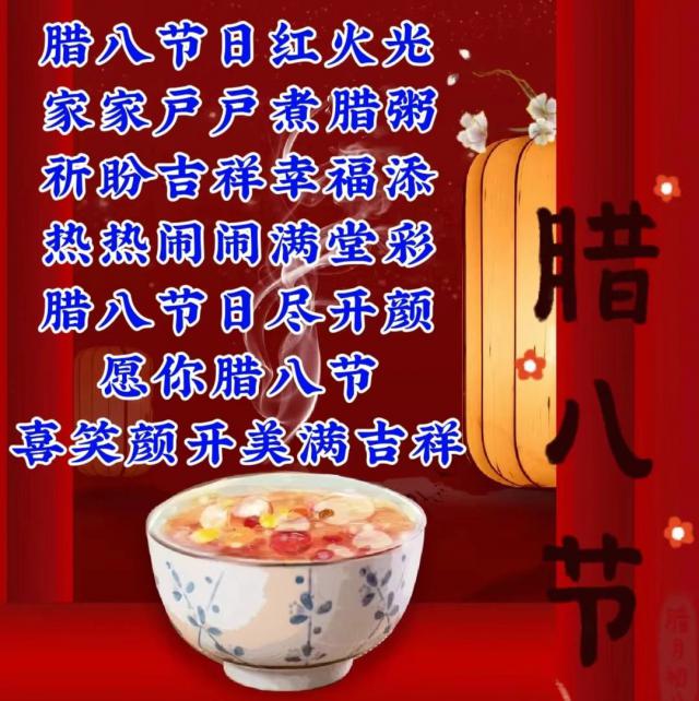 腊八腊八要发展,事业爱情遍地开花。腊八腊八要美,家庭要美,生活要美。腊八腊八要喝粥。兄弟们今天不送粥,只送幸福和财富永远持续下去。腊八节快乐!