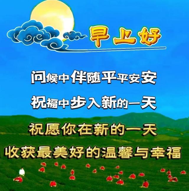 晨曦初送问候,早上好。心情愉快如梦游。祝你今天一切顺利透明。阳光明媚,天空晴朗,笑容满面。早起的人最幸运,一切顺利。祝你一天好运,早上好,鸟儿快乐。