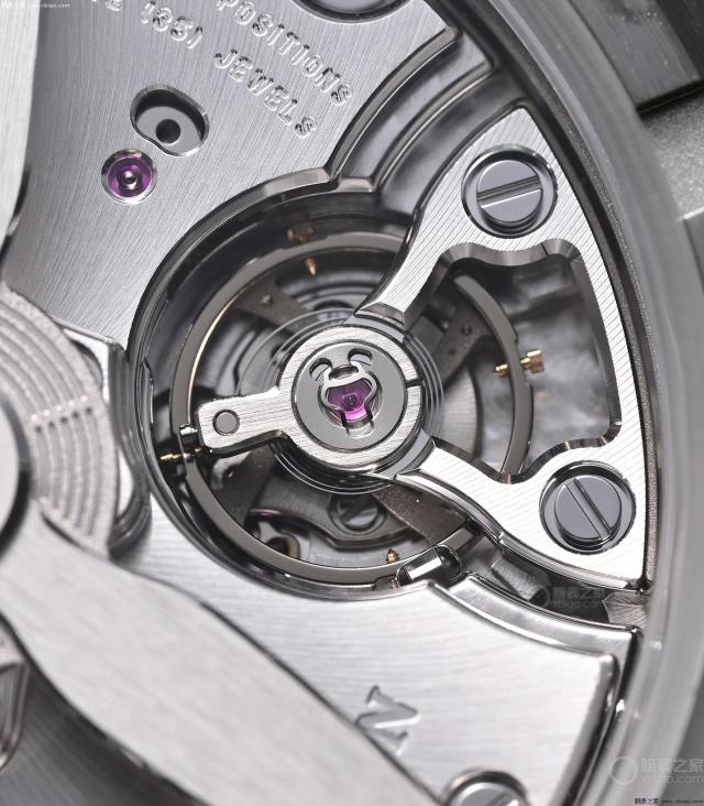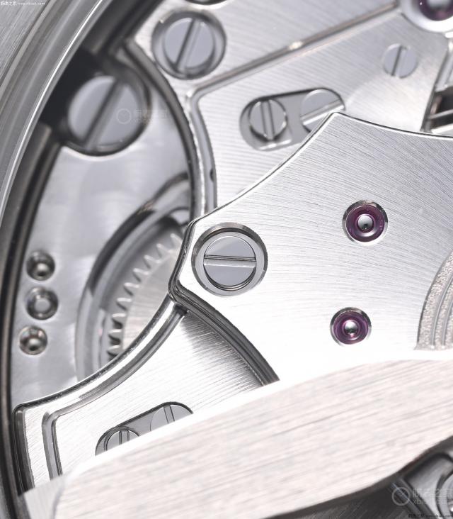 F388 机芯,装饰以拉丝为主,上夹板放射线拉丝,夹板边缘有细致的倒角。虽然自动计时机芯的上夹板会挡住下夹板,但是 F388 除柱轮外,机芯还将有珍珠纹装饰的下夹板、下齿轮轴,尽量外露,提高机芯的观赏价值。