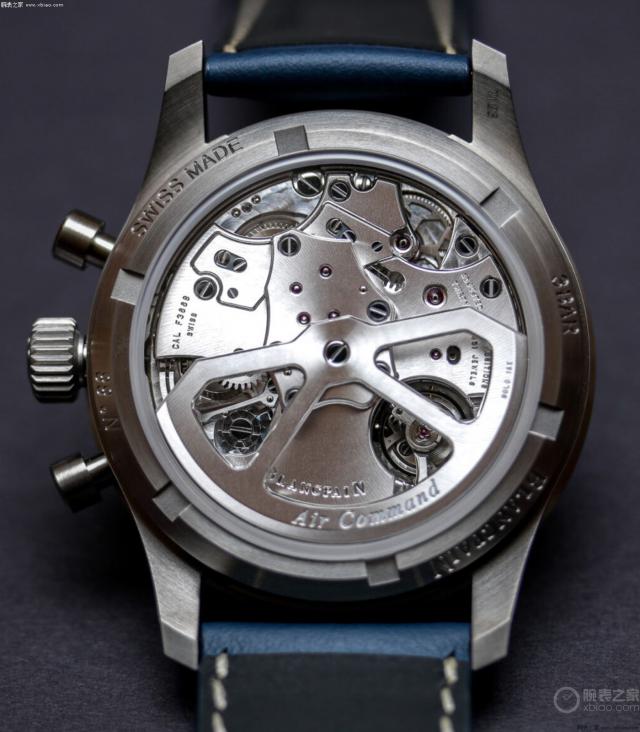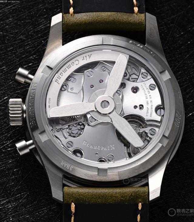 这个是空军司令使用的 F388 自上弦计时机芯,是宝珀的主要计时机芯,也是市场上整体性能最好的自动计时机芯之一。宝珀 F388 以宝珀命名的自动计时机芯。 1185 重新设计了自动计时机芯的基本结构。具有飞回功能,在保证柱轮、垂直离合的基础上,采用硅游丝,摆频提高至 36000 次 / 时间,并且保持 50 小时动力。它是所有斯沃琪集团中水平最高的自动计时机芯之一(宝玑的新一代 728 计时机芯,和宝珀 F388 运动也要有血缘关系)。