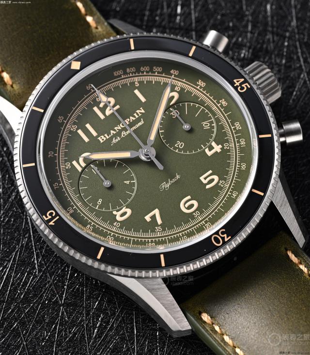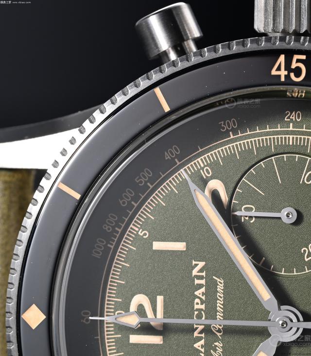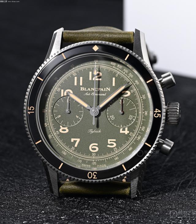 使用黑色陶瓷圈的宝珀空军司令,绿盘限量版。