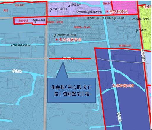 九亭家园三期搬迁安置房项目即将竣工交房。为了进一步改善九亭家园三期社区居民出行条件,拟对朱金路(中心路-文仁路)进行道路整治。在九亭家园三期搬迁安置房及新建文仁路等工程的施工出入通道中,该路面前期使用,造成大量坑洼和破裂。拟优化修复全线车行道路,更新排水工程、照明工程、附属工程,进一步提高道路质量,确保市民出行安全。