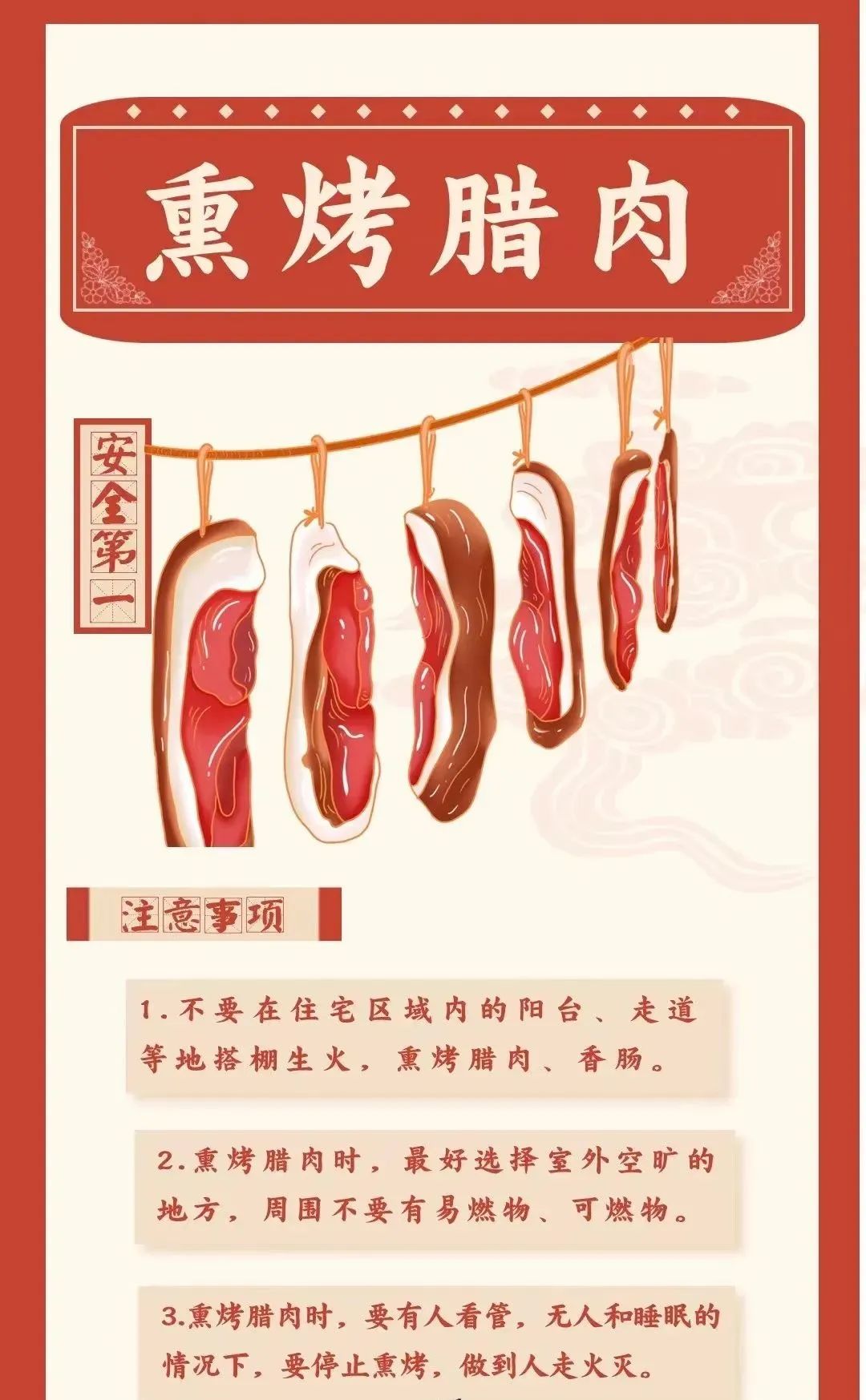 2024年12月28日,贵州省贵阳市花溪区一栋民房因熏腊肉发生火灾。消防救援人员第一时间到达现场,扑灭明火。据了解,户主熏腊肉时无人看管,熏肉篝火仍处于阴燃状态。当油滴入篝火时,发生火灾,火灾点燃了上面的腊肉和篝火周围的几袋木渣。幸运的是,它没有造成人员伤亡。