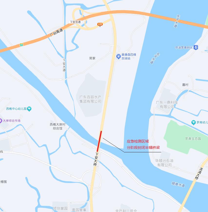 为了保证桥梁的安全,管理单位需要对G359佛富线下安大桥进行紧急检查,计划在1月8日晚22:00至次日6:00将西樵半桥关闭到丹灶,1月9日晚22:00至次日6:00将丹灶关闭到西樵半桥。>>详情:南海西樵