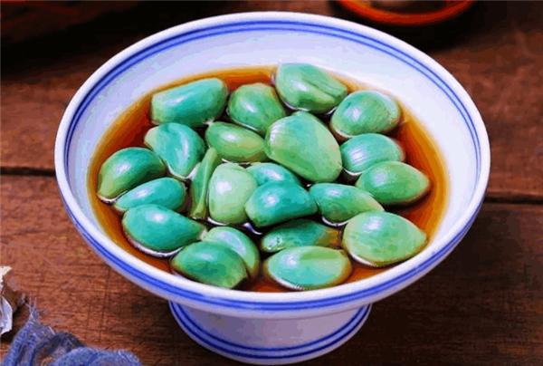 按照老注意,腊八这一天,将大蒜剥皮腌至醋中,避免阳光直射,直至大蒜变绿,到“破五”那天蘸饺子吃。