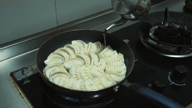 4. 上锅煎饺,将少量食用油倒入厚底锅中,然后迅速盖上盖子,用水蒸气使饺子内部成熟;