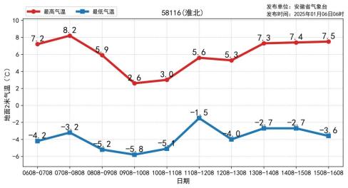 淮北、合肥、黄山市未来十天最高,最低气温预报