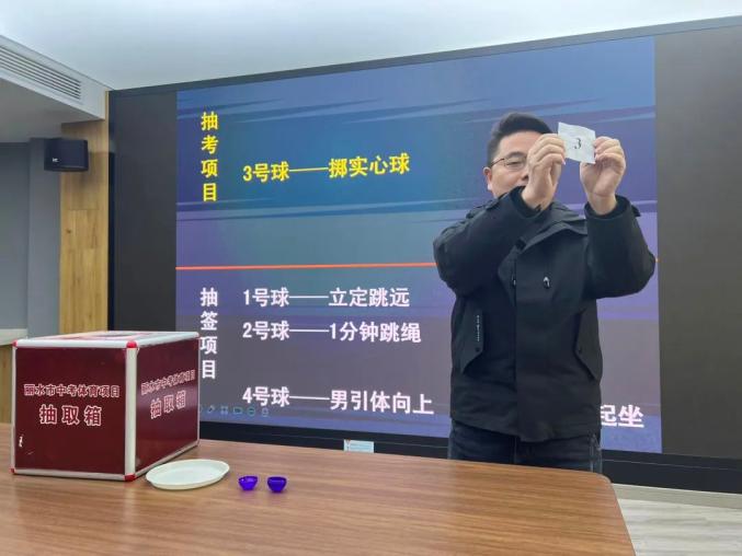 1月6日下午,市教育局组织召开2025年初中毕业体育考试抽签发布仪式,确定2025年中考体育抽奖项目是投掷实心球,跳绳一分钟。