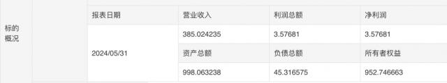 2024 年 05 月 31 日本财务报告显示,保山矿投建设工程有限公司营业收入 385.02 一万元,净利润 3.58 负债总额一万元 45.32 一万元,总资产 998.06 万元。