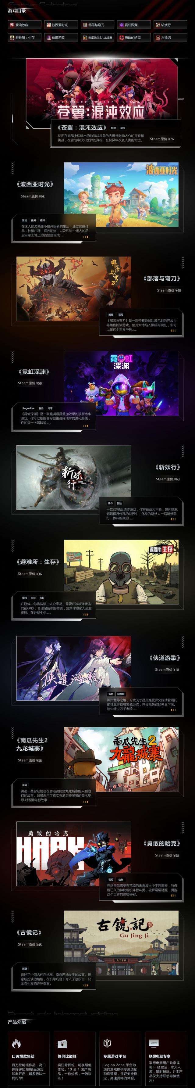 IT 家庭附属联想" LegionPlay “真正享受”服务游戏目录如下: