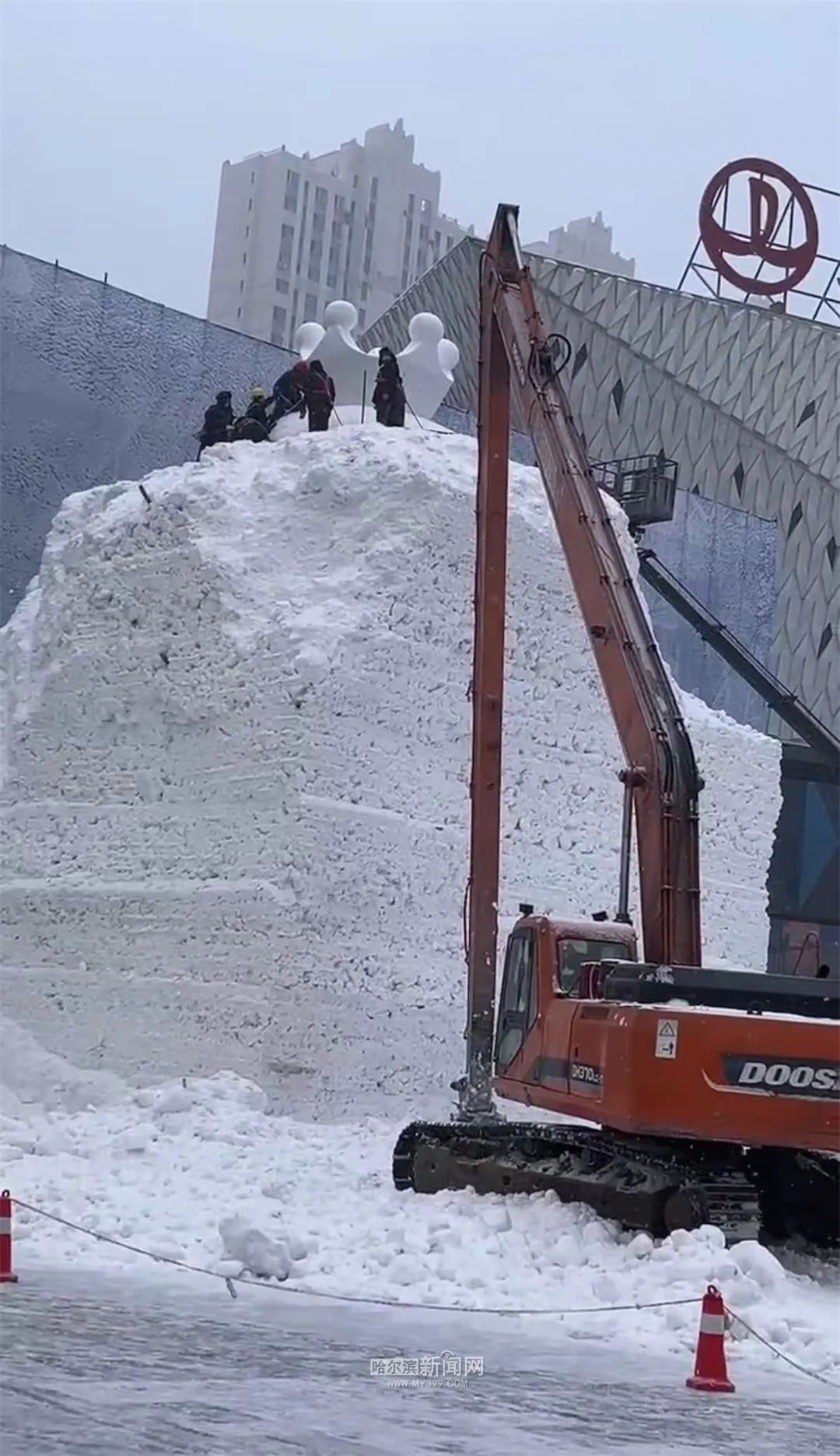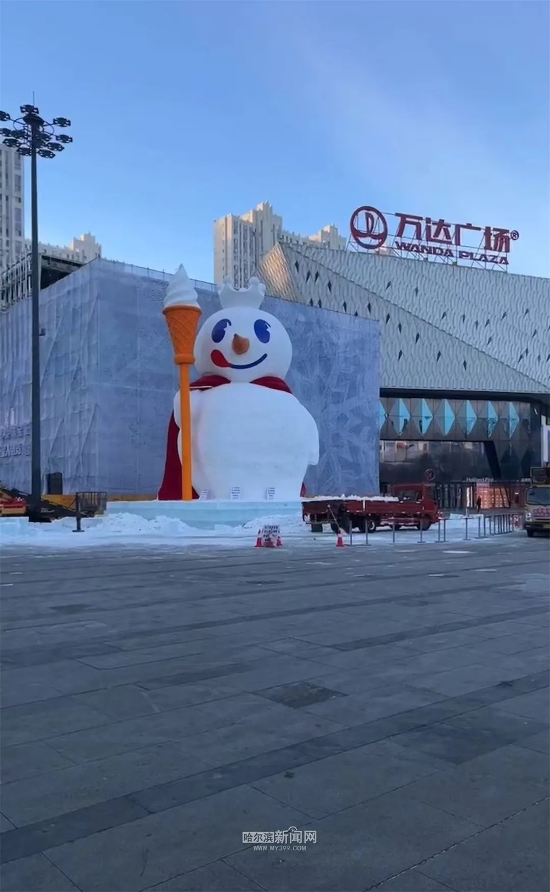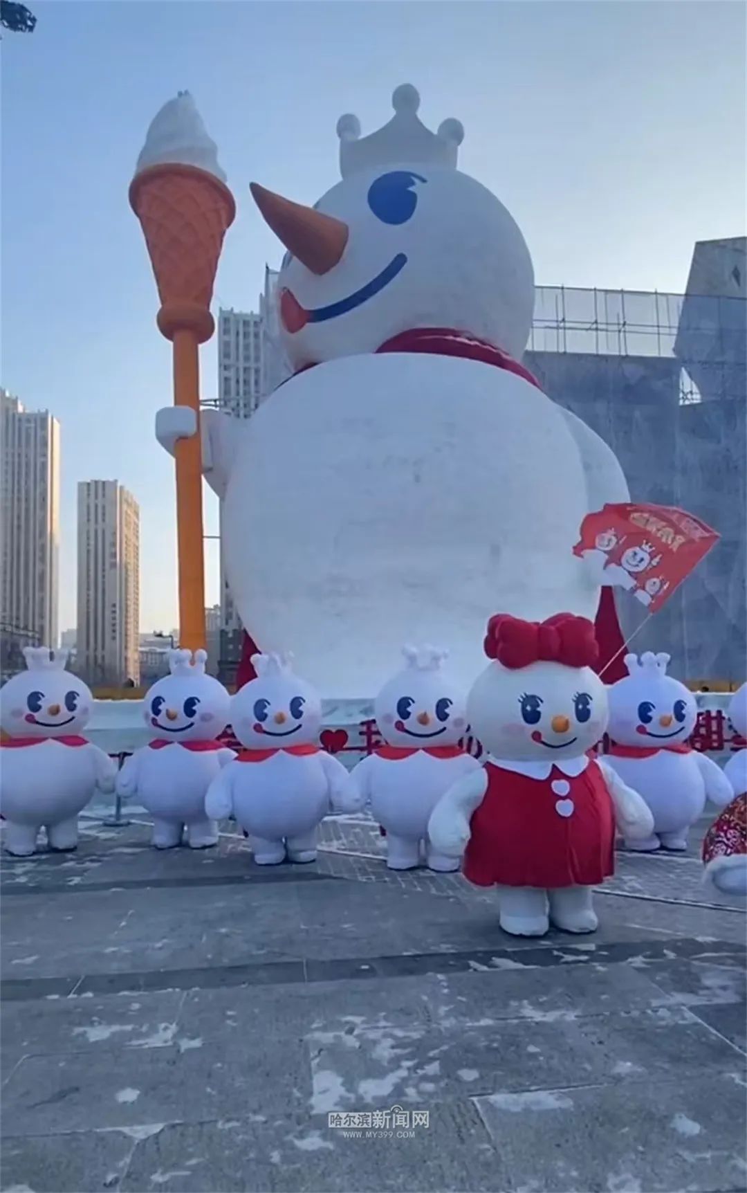 原题:“冰城雪人又上新了!16米雪王雪人在哈西商圈“出门”
