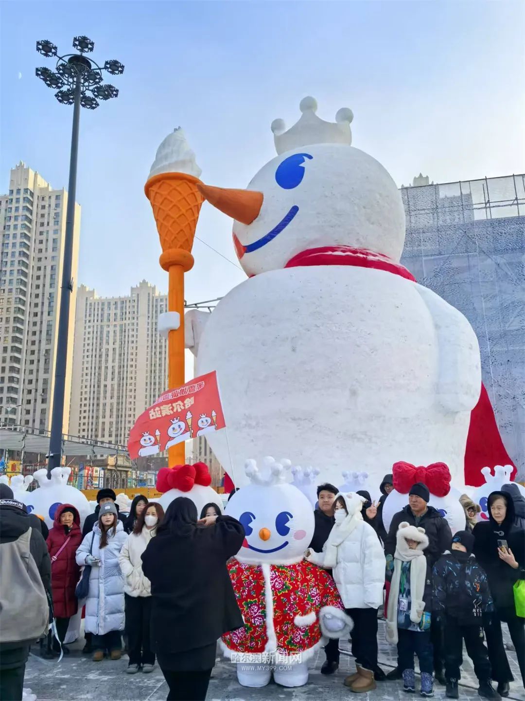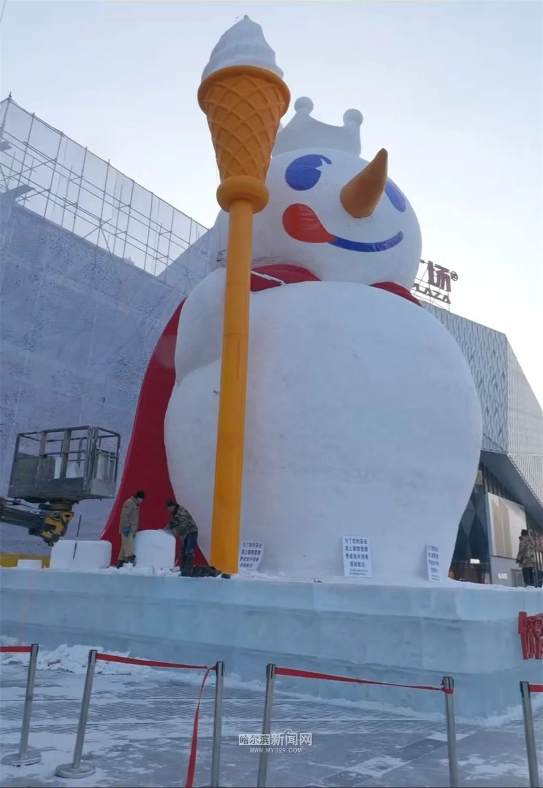 冰城雪人又上新了!16米雪王雪人在哈西商圈“出门”