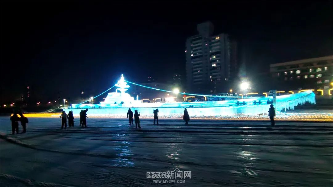 原题:“冰雪辽宁舰”璀璨亮灯,来哈游客争相打卡赞叹“特别震撼”