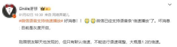 对于这一点,腾讯客服表示,微信版已经更新到8.0.55后回播语音新闻时,可以在语音气泡旁边选择双速播放,也支持双速播放时恢复原速播放。但是有些已经升级到了8.0。.iOS用户发现55版本还没有出现语音消息倍速播放的功能。