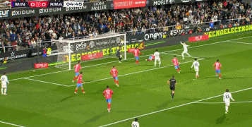 第五分钟,迪亚斯禁区左侧拿球传到后点,米内拉球员救场失误,巴尔韦德小角度腾空射门,皇马1-0领先。