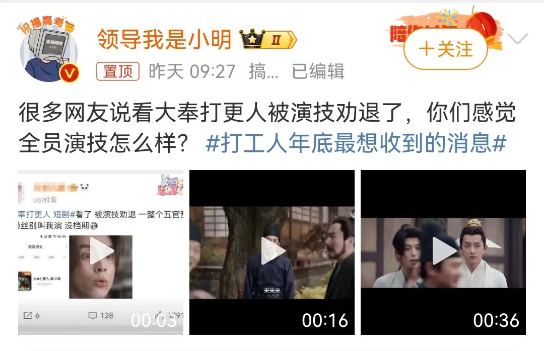 最引人注目的是,这部剧被网友命名为“耀祖”。在网友眼里,同一个平台的热播剧《永夜星河》《九重紫》《猎罪插图》等。都是苦不堪言的“招聘”,而备受期待的《大奉打更人》则是无法支撑的弟弟“耀祖”。因此,粉丝和演员之间发生了一场更加激烈的红黑战争。