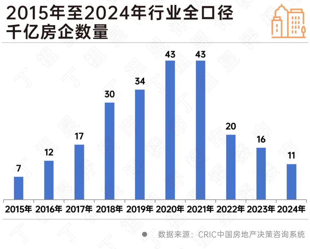 此后,千亿房地产企业数量持续下降,直至2016年,千亿房企数量回到2016年的水平。