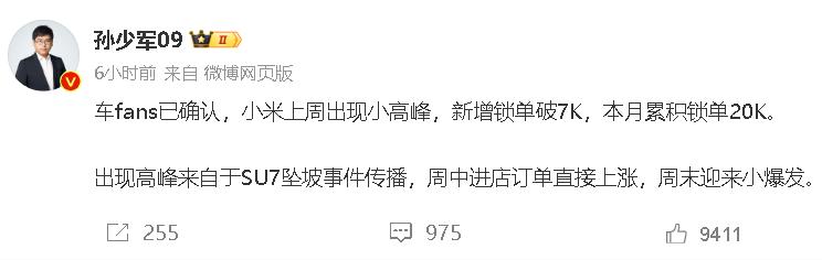 从“一家四口驾驶小米su7失控坠崖”到“大众追尾小米SU7后起火自燃”,这几天点燃热搜的消息直接让小米汽车的锁单量迎来了一个小高峰。毕竟第一批小米SU7不多,但是第一批小米SU7车主还是很安全的。他们可以爬出悬崖,自己拍照。这不是很好的用户营销。