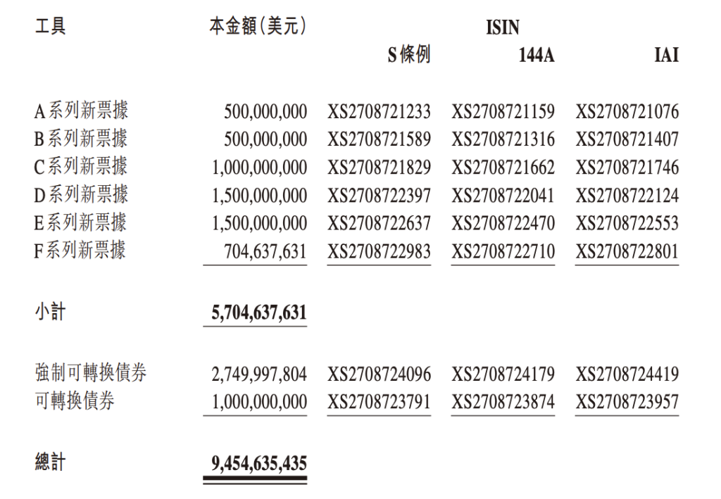 具体而言,融创中国作为一些重组对价发行的工具(包括新文件), 强制性可转换债券,可转换债券)如下: