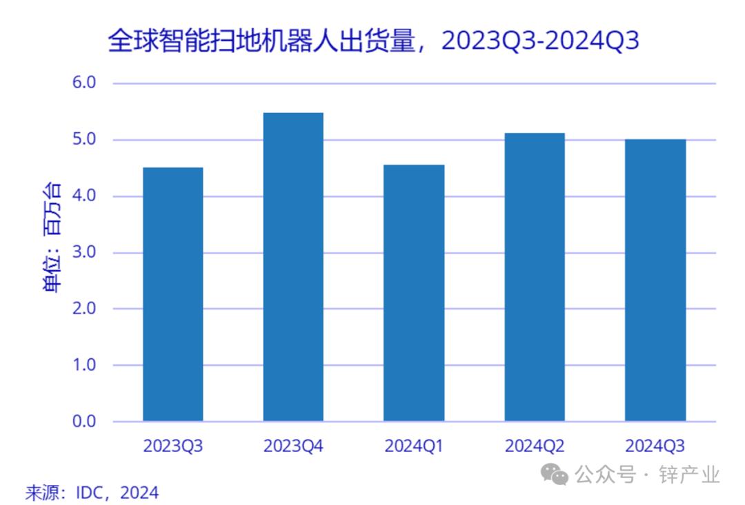 根据IDC的最新数据,2024年第三季度,全球智能扫地机器人出货量达到501.4万台,同比增长11.1%;国内出货量132.1万台,同比增长17%。