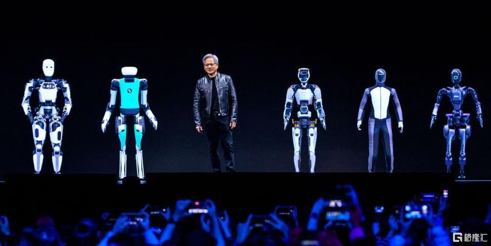 黄仁勋在场介绍了与英伟达合作的合作伙伴名单,包括国内厂商宇树科技人形机器人H1和小鹏汽车人形机器人老铁。