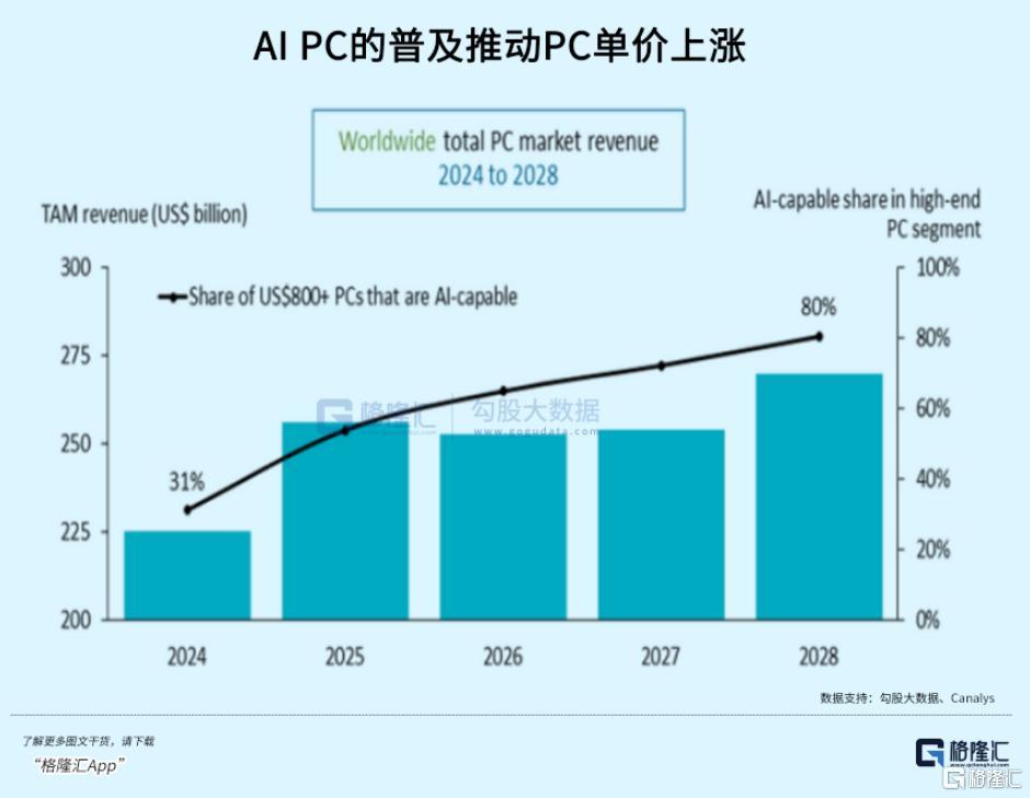三是全球可穿戴腕带设备市场同比增长3%,全球AR/VR头戴设备出货量增长12.8%,全球AI PC出货量达到1330万台,占本季度PC出货量的20%。而且这种AI功能的普及推动了屏幕、存储、光学等硬件的升级,进而推动了终端产品的价格上涨。