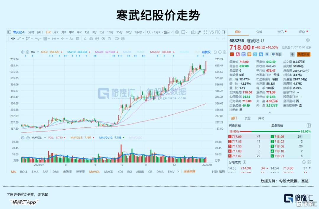 今天,铜缆高速连接板块爆发,太辰光等多股涨停;半导体板块下午上涨,被a股市场炒作,认为可以和英伟达的寒武纪相比。今天暴涨超过10.55%,再创历史新高,市值无限接近3000亿元。这一AI芯片巨头目前仍然很难在短期内看到足够的盈利业绩,但是股价不断飙升,正在教股东“重新建立认知”。