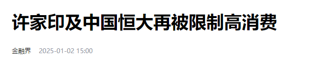 到目前为止,深陷债务泥潭的恒大和许家印已经多次限制高消费。2025年1月2日,天眼查信息显示,中国恒大集团和许家印再次被广州市中级人民法院限制高消费。