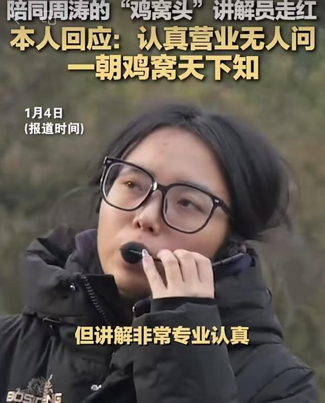 近日,主持人周涛出现在河北邯郸丛台公园参加活动,一位身着“鸡窝头”造型的评论员因其独特的着装出人意料地走红。1 月 5 日前,丛台公园工作人员回应称,这位讲解员平时讲解风格很流行,景区对她的意外火爆也感到惊讶。