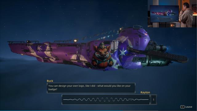拿《 动物朋克 》总之,在飞船喷涂阶段,可以直接使用手柄的麦克风和游戏 NPC 说出你想要什么颜色,然后游戏直接给你。 AIGC 一艘飞船画出来了。