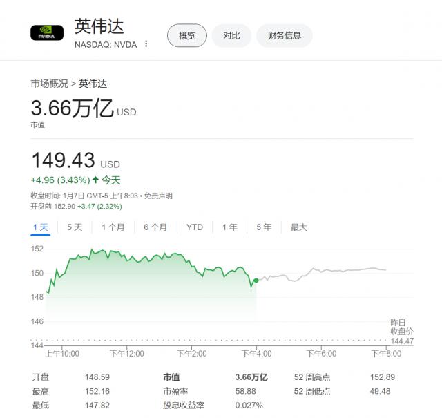 正当老黄召开新闻发布会后,英伟达的股票上涨。 3.43% ,最新的市场价值已经到来 3.66 万亿,再创历史新高,属于。