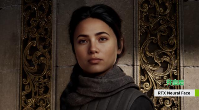 所以这次老黄拿出来了 RTX Neural Faces ,这种技术可以用来提升人物的面部姿态,小到头发和皮肤的光影细节,都可以让你更加真实。