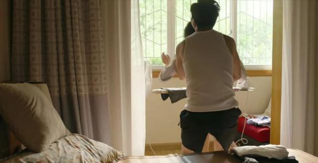 当郭京飞和陈数同框出场时,一个人躺在床上,一个人已经起来熨衣服了。