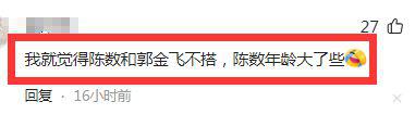 有些网民直言不讳,“我觉得陈数和郭京飞不搭,陈数年纪大了一点。""陈数如此老演郭京飞妻子?"。
