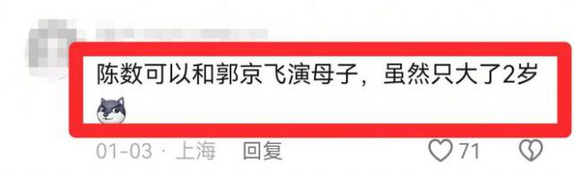 有些网民甚至夸张地说:“陈数可以和郭京飞一起演母子,尽管只是大了。 2 岁"。
