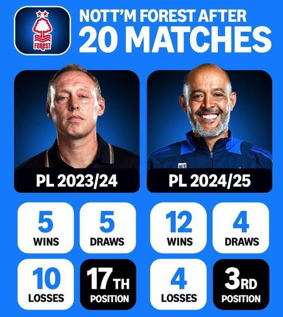 20 轮过后森林 40 得分和阿森纳一样,只是因为净胜球的劣势错过了第二名;比曼城更高 6 得分,曼联更是落后 17 分之多!切尔西也领先于切尔西 4 分,这意味着森林最近至少在最近。 2 轮子不会跌到前三!据官方统计,森林上个赛季只拿到了同一期。 20 分数,努诺领队多拿了 20 分!上一次在森林里参加欧冠,可以追溯到 79-80 这个赛季,到目前为止已经是了 45 多年来,在曼市双雄和热刺都打得不好的情况下,只要森林保持这种干劲,就不是不可能重返欧冠。