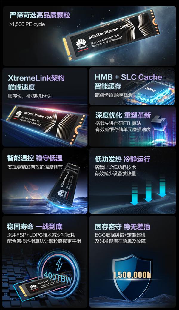 华为独创的 XtremeLink 结合硬件控制通道和数据直接设计的架构, 2400MT/s 高速 NFI 与华为自主研发的链接 FTL 保证数据传输速度更快、更持久的算法。