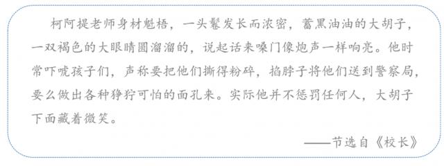 这本书语言精彩绝伦,我们再来欣赏一下柯阿提老师的外貌描写,感受一下这位老师的特点。