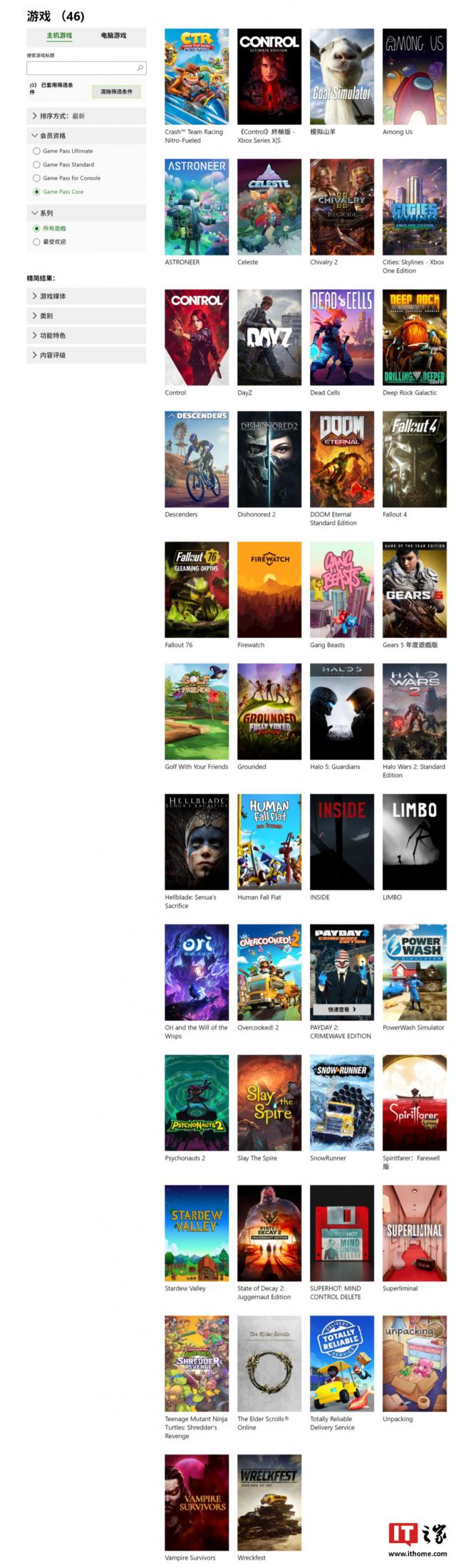 此外,Xbox Game Pass Core 最新的订阅游戏列表如下: