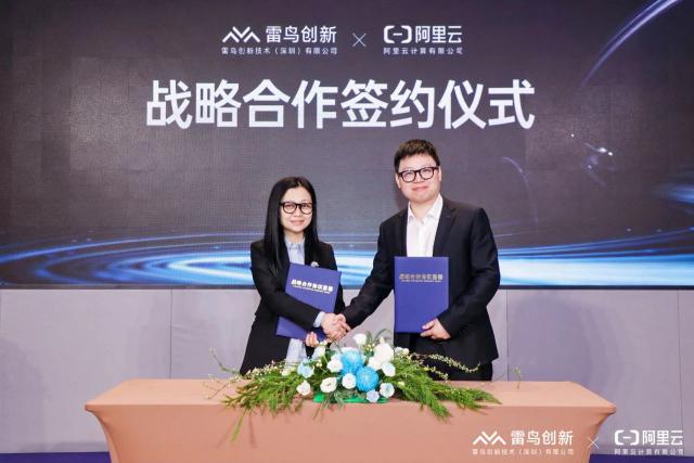 图片:华南大区总经理康敏(左)阿里云智能集团副总裁、雷鸟创新 CTO 张君杰(右)