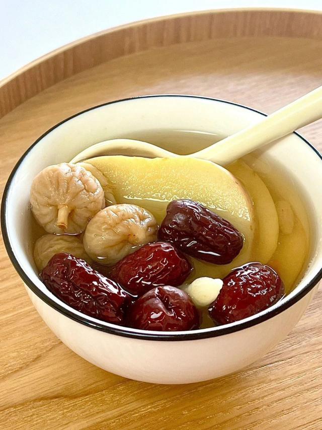 或者,将雪梨干、海底椰、玉竹、百合、枸杞结合起来,煮上一锅香甜的雪梨玉竹无花果汤。