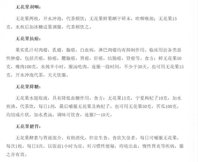 "治疗咽喉刺痛,无花果鲜果干燥,研末,吹喉。"