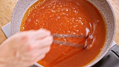 将酱倒入平底锅中,