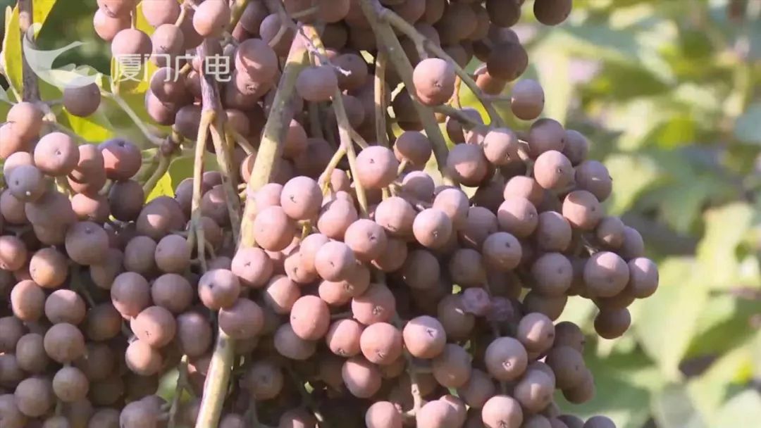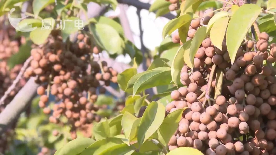 除芒果树外,记者还看见一棵枝叶繁茂的秋枫树,上面挂满了一串金黄色的秋枫果,形状非常像迷你版的桂圆。
