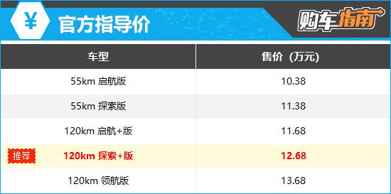 总而言之,价格 12.68 万元的 120km 探索 版本性价比最高,消费者在购买时可优先考虑。