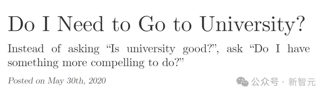 对于这一点,他在2020年发表了一篇名字。「要不要上大学?」博客作为回应。