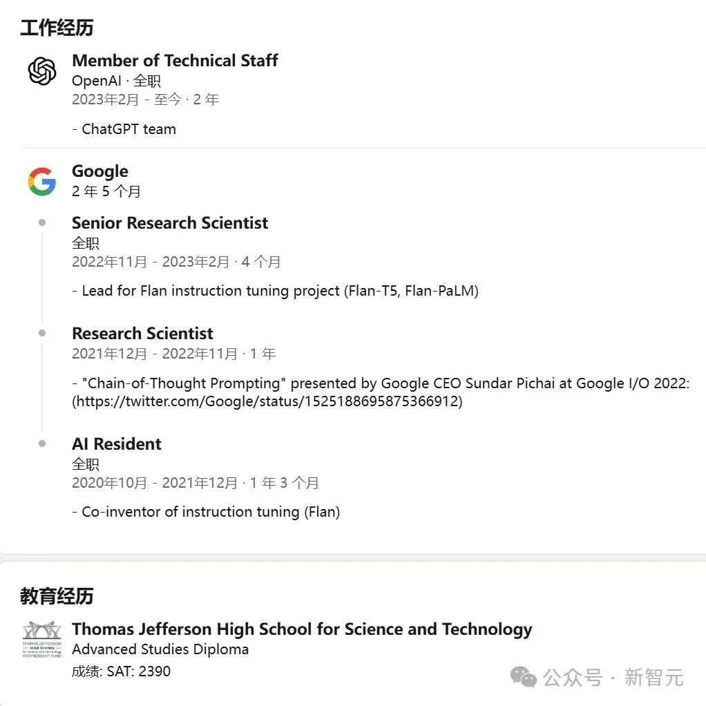 2020-2023年,他主要是Google 在Brain中进行思维链(CoT)、研究指令微调和出现现象领域。