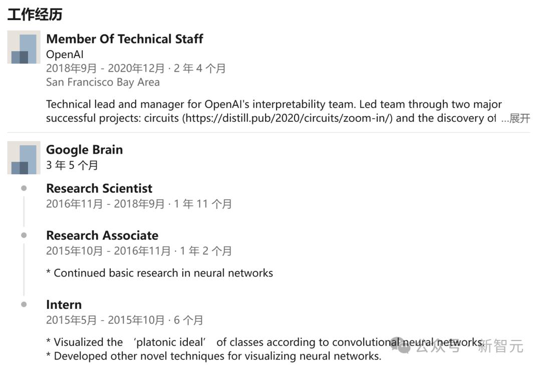 Christopher Googleleolah曾经在Google 作为OpenAI中可以解释性探索的领导者,Brain曾经是Anthropic的创始人。