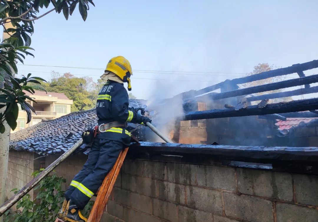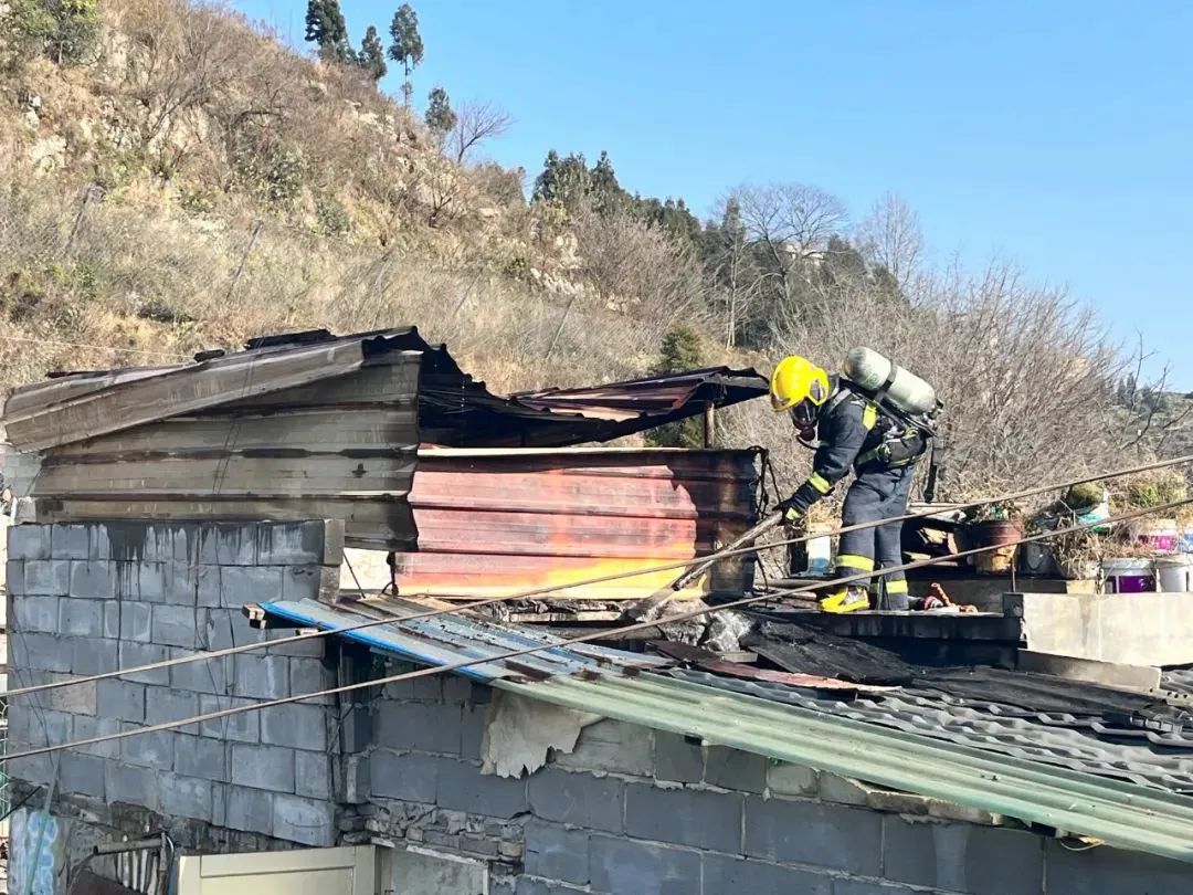 火灾部位位于民房屋顶