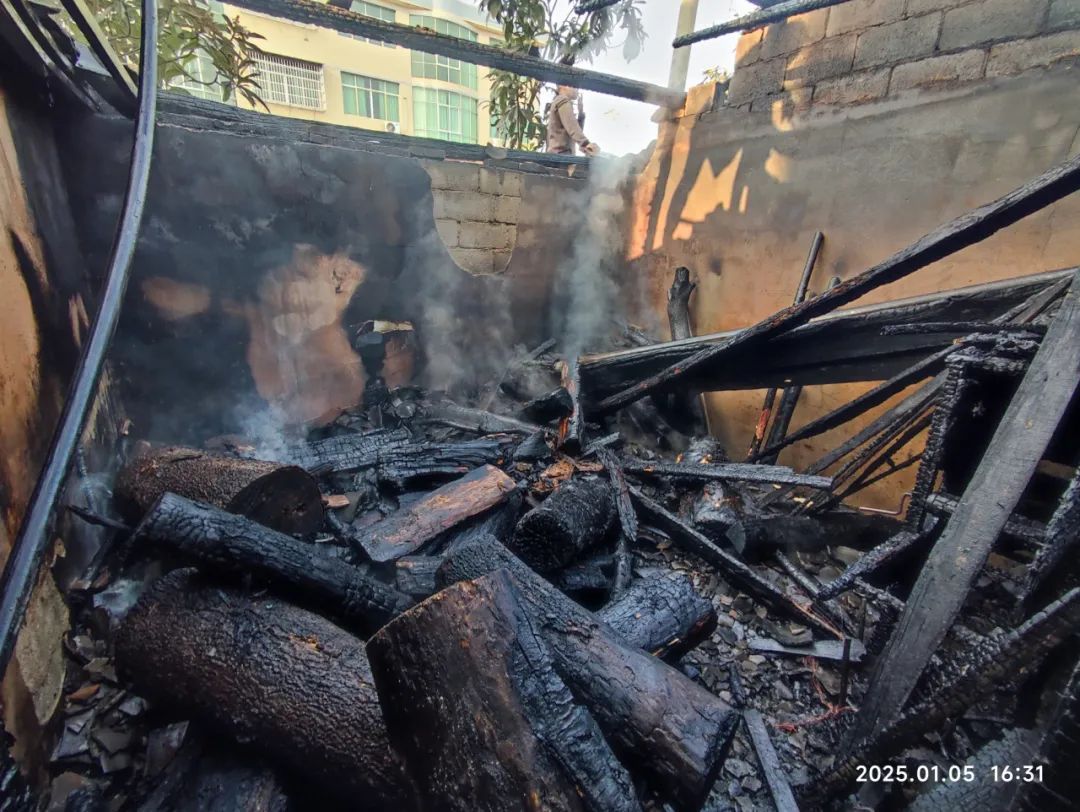 一个自建房屋因熏腊肉而发生火灾。